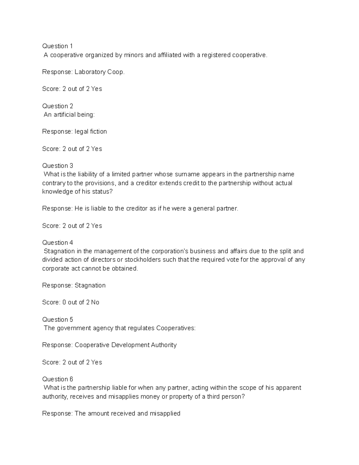 Partnership, Corporation, and Cooperative Law - Question 1 A ...