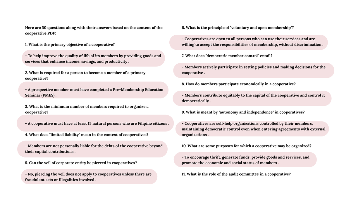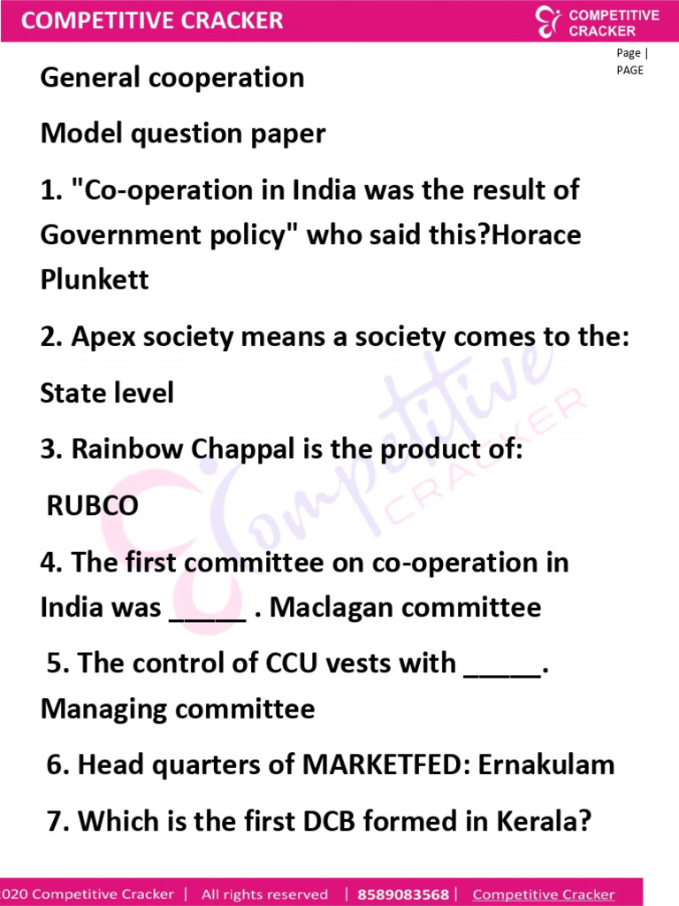 Co-operative Exam Questions & Answers | PDF | Cooperative | Mutual ...