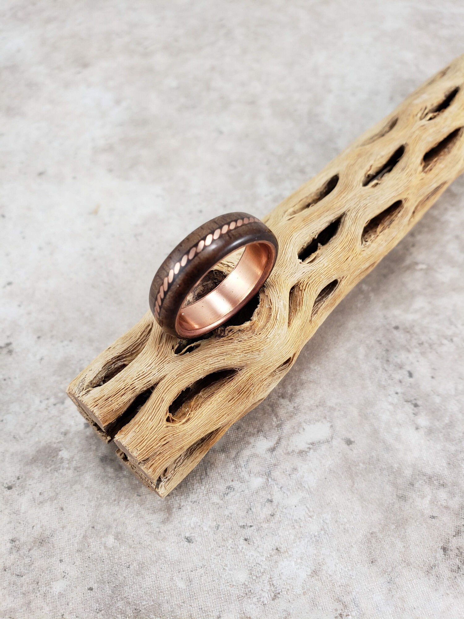 Wooden ring with a copper inlay