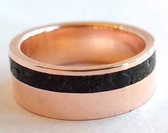 Matte Copper Sand Inlay Ring – Custom Earth Ring with Mixed Metal Edges ...