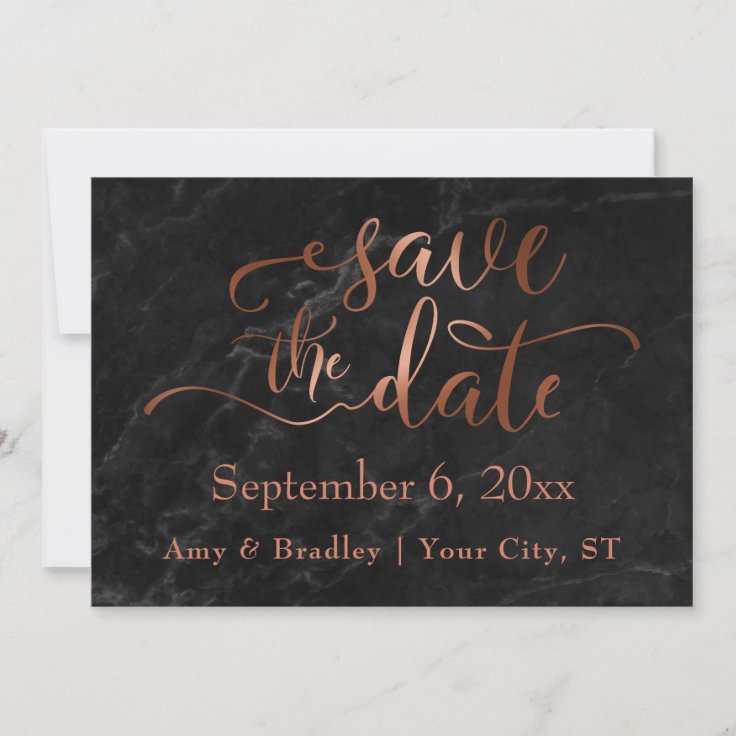 Copper Script & Black Marble Wedding Save the Date | Zazzle