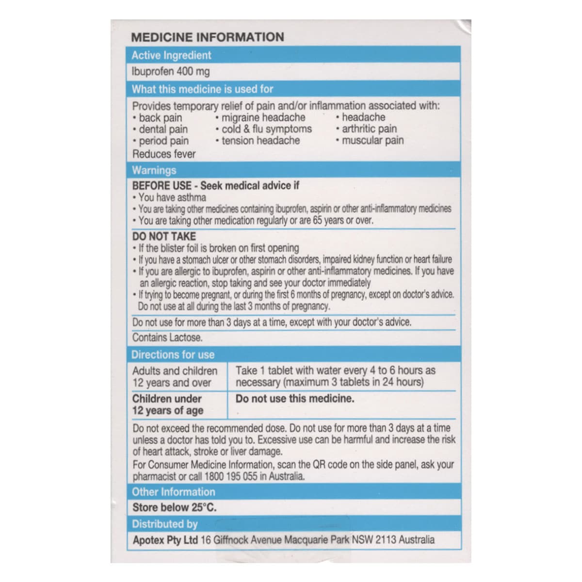 IBUPROFEN 400MG 124 Label Image