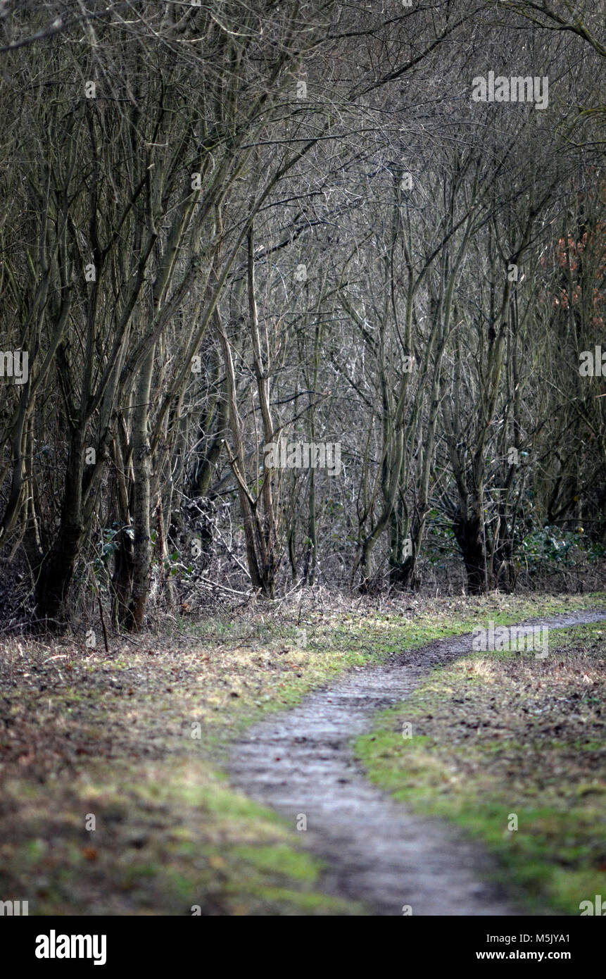 single path through woodland copse Stock Photo - Alamy