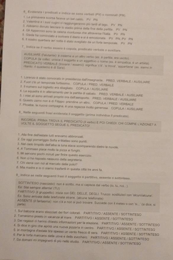 Risolto:Evidenzia i pradicali e indica se sono verbali (PV) o nominali ...