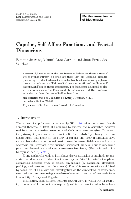 (PDF) Copulae, Self-Affine Functions, and Fractal Dimensions