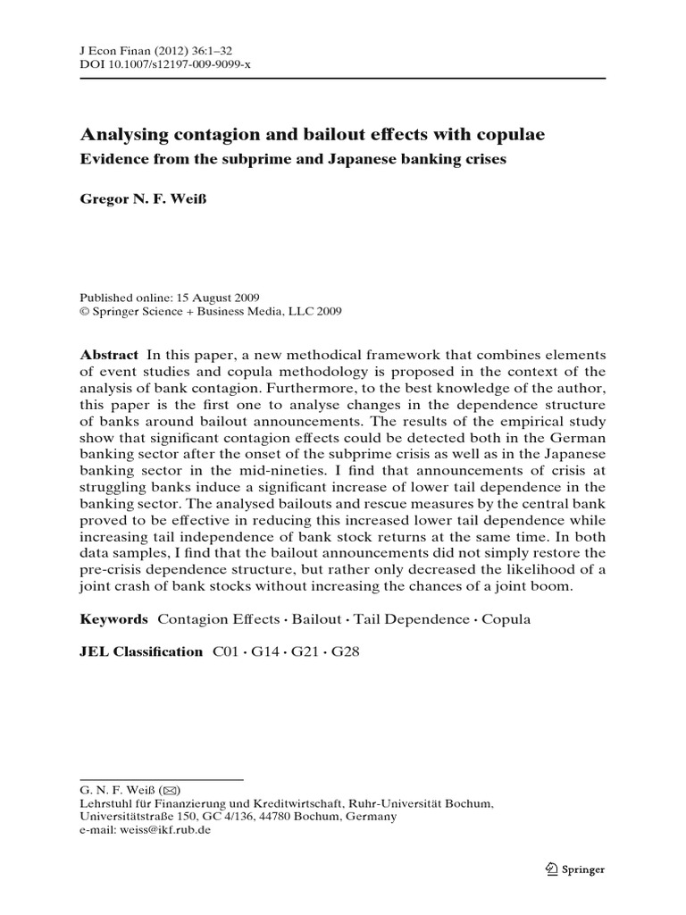 Weib (2009) Analyzing Contagion and Bailout Effects With Copulae | PDF ...
