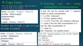 Python Copy Lists || Copy a list, Join Two lists, append list items ...