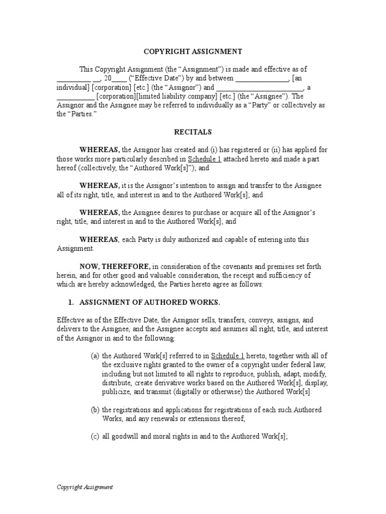 Free Copyright Assignment Agreement - PDF | Word – eForms