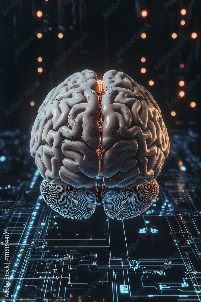 Ilustrasi Stok Schematic Human Brain Computers Motherboard ...