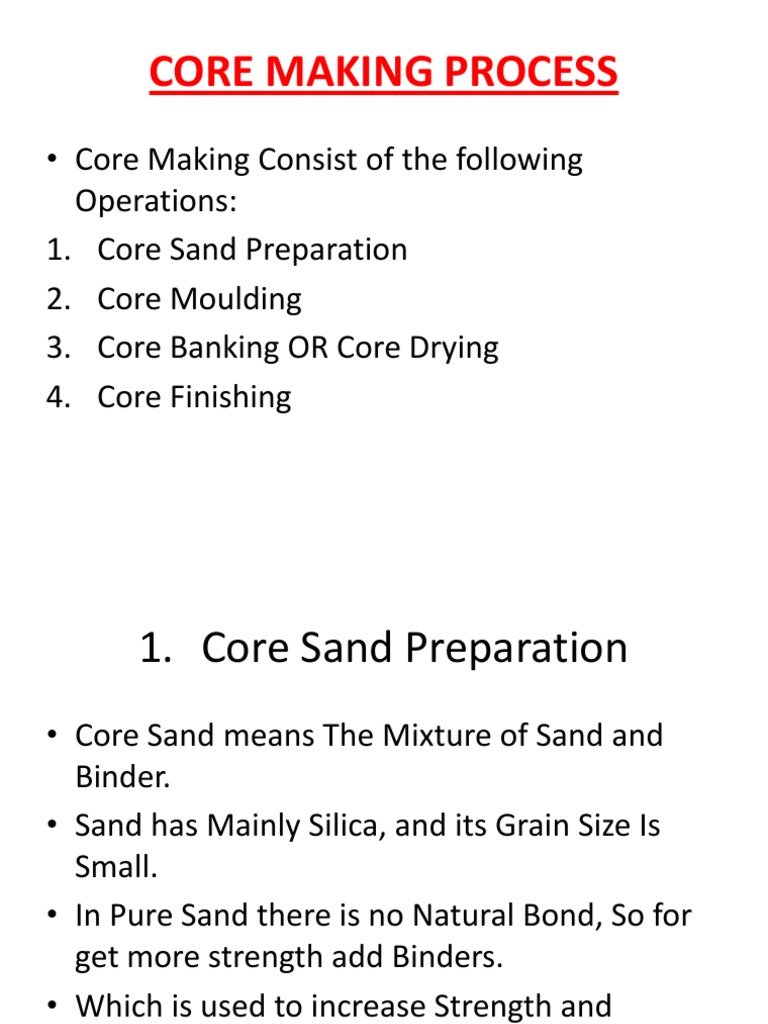 SOLUTION: Core making process , sand core making process , casting ...