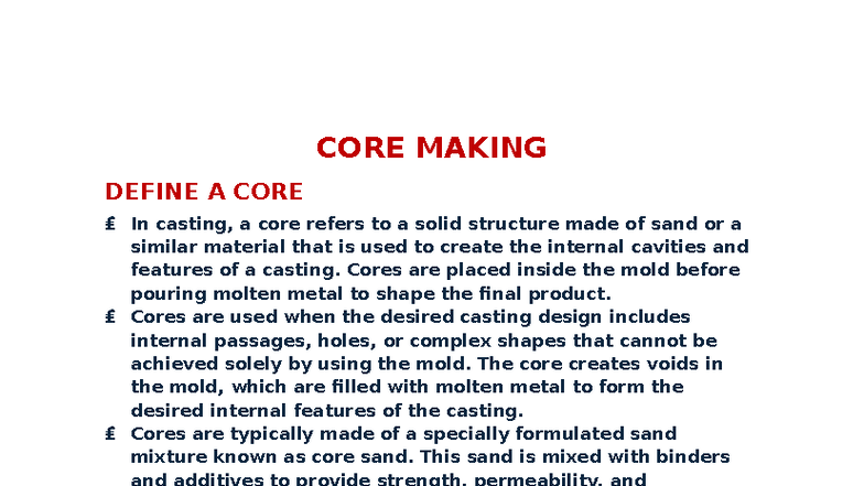 Topic 6: CORE Making - Revision & Study Notes for Casting Processes ...