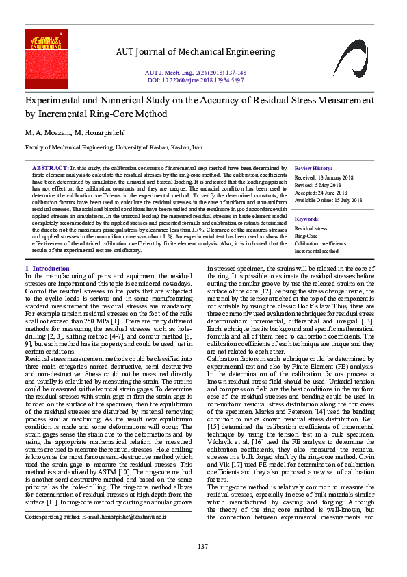 (PDF) Experimental and Numerical Study on the Accuracy Residual Stress ...