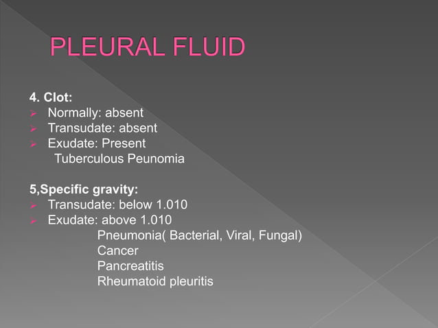 Pleural fluid | PPTX | Lung and Respiratory Health | Diseases and ...