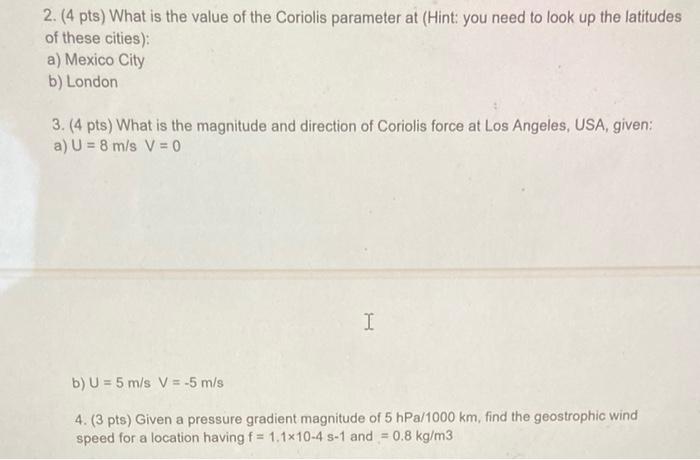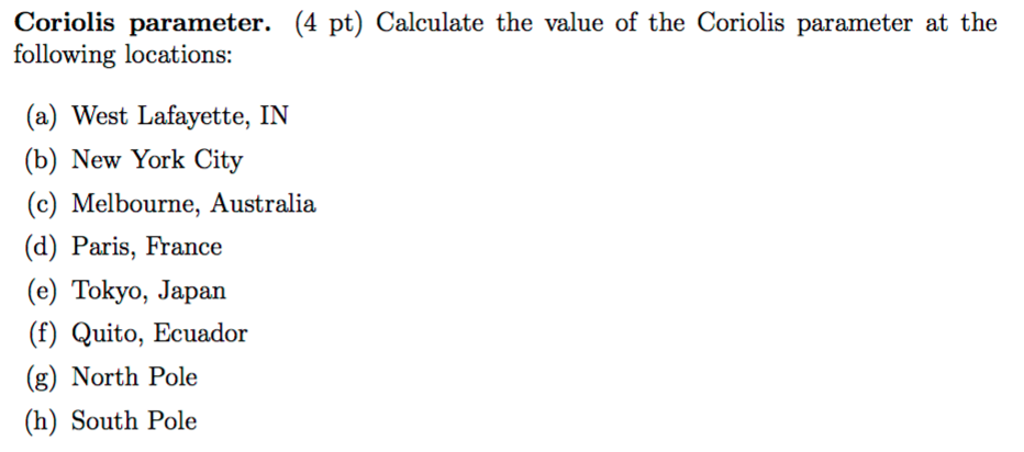 Solved Coriolis parameter. (4 pt) Calculate the value of the | Chegg.com
