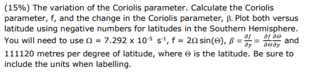Solved (15%) The variation of the Coriolis parameter. | Chegg.com