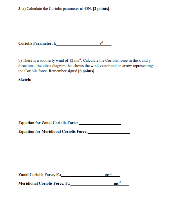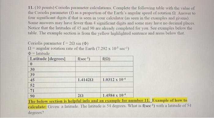 Solved 11. (10 points) Coriolis parameter calculations. | Chegg.com