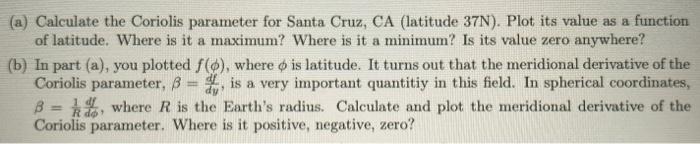 Solved (a) Calculate the Coriolis parameter for Santa Cruz, | Chegg.com