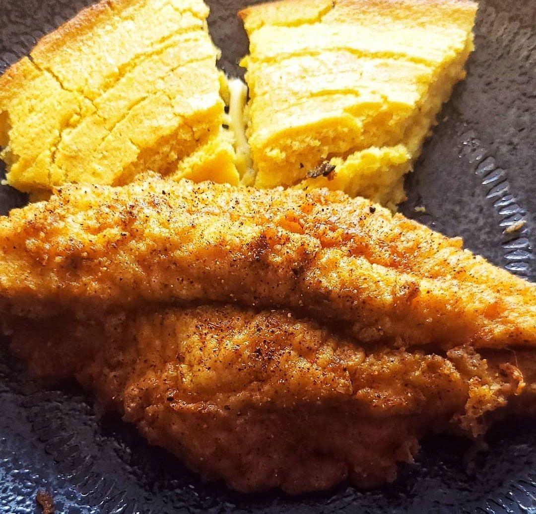 Fried catfish with cornbread 15946245 Stock Photo at Vecteezy
