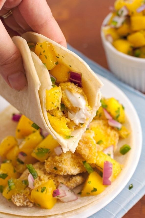 Cornbread Fish Tacos with Mango Salsa - 2teaspoons