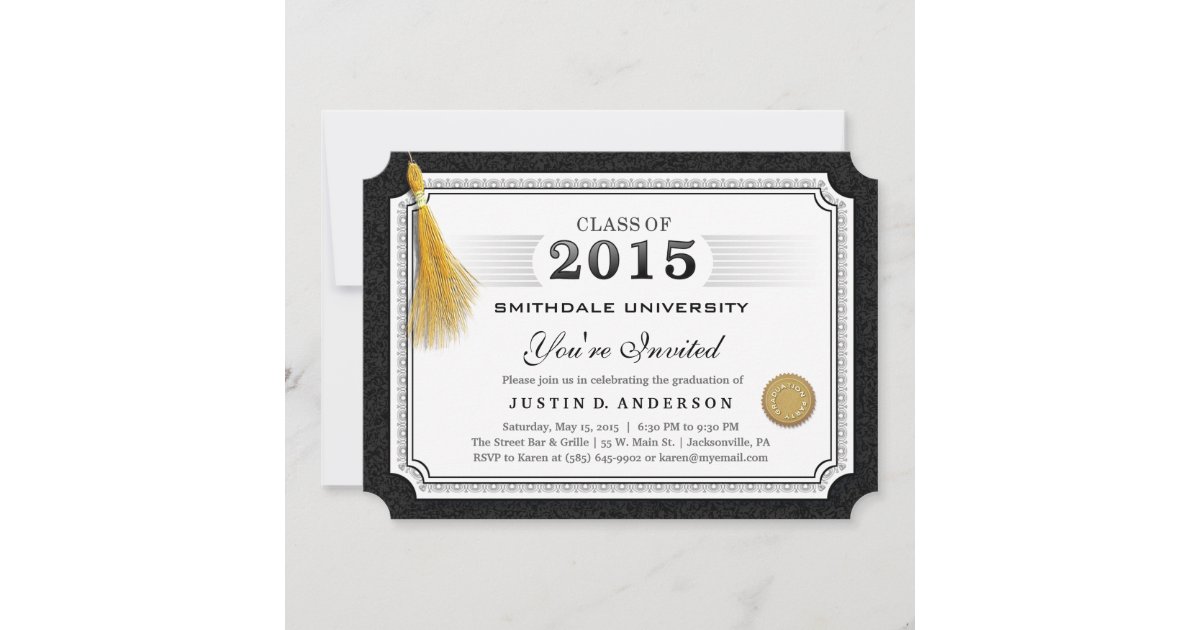 2015 Diploma Graduation Invite Gold Tassel Corners | Zazzle