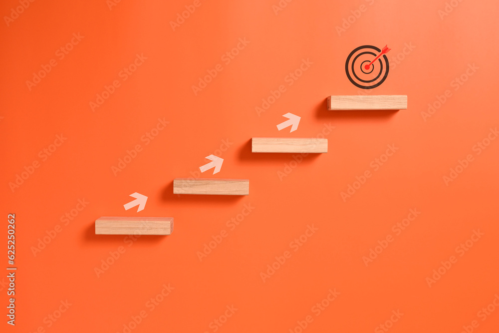 Correct checklist and target goal icons on wooden blocks, Business ...