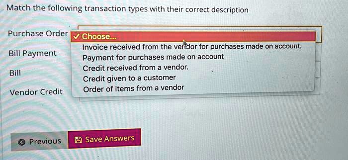 Match the following transaction types with their correct description ...