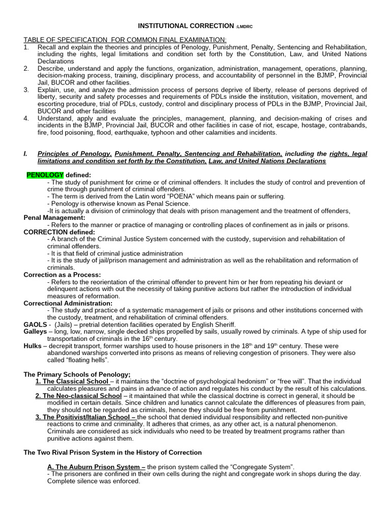 Institutional Correction Notes | PDF | Punishments | Prison
