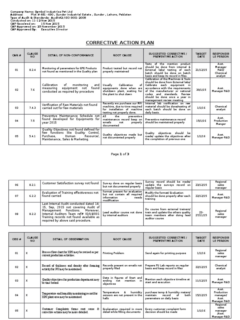 Corrective Action Plan | Internal Audit | Verification And Validation