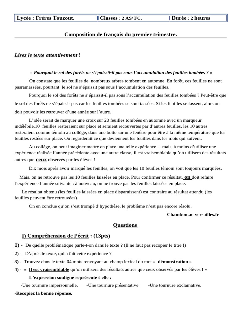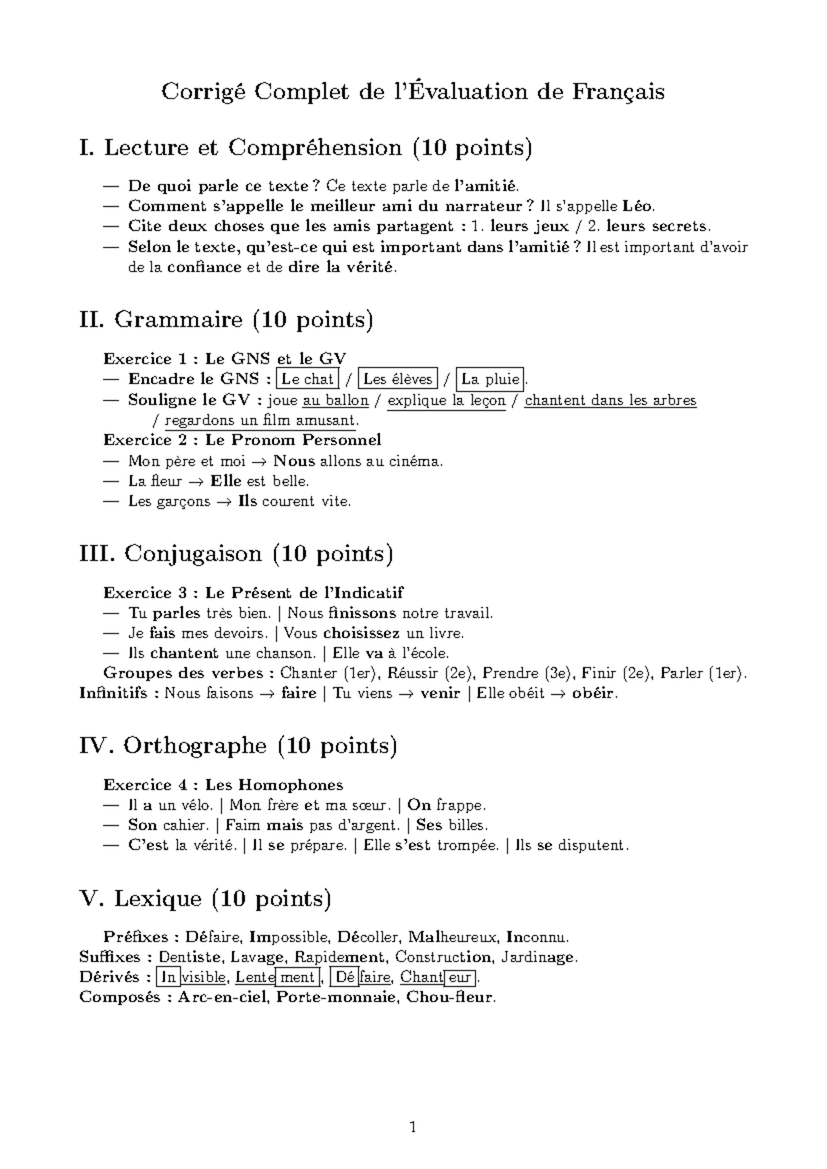 Corrigé Complet de Français I - Lecture et Compréhension (10 pts) - Studocu