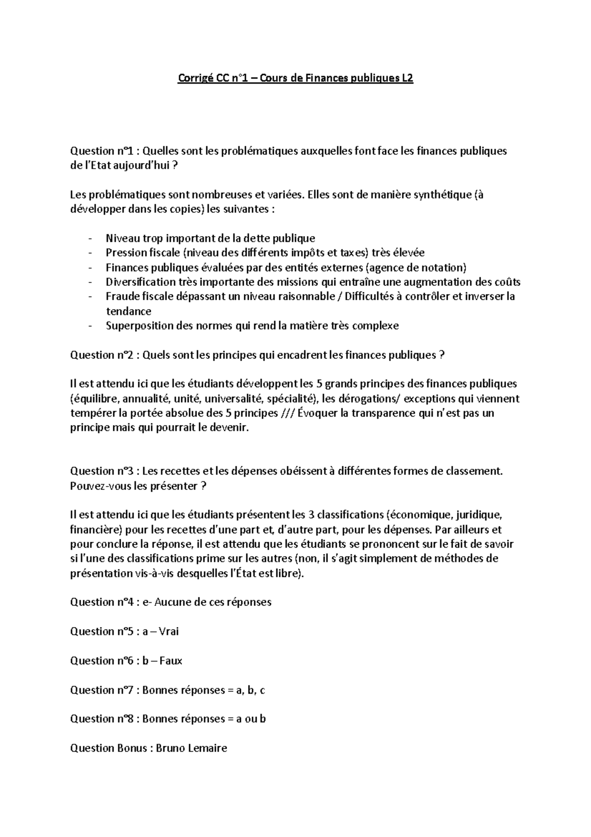 Corrigé CC1 - Problématiques et Principes des Finances Publiques L2 ...