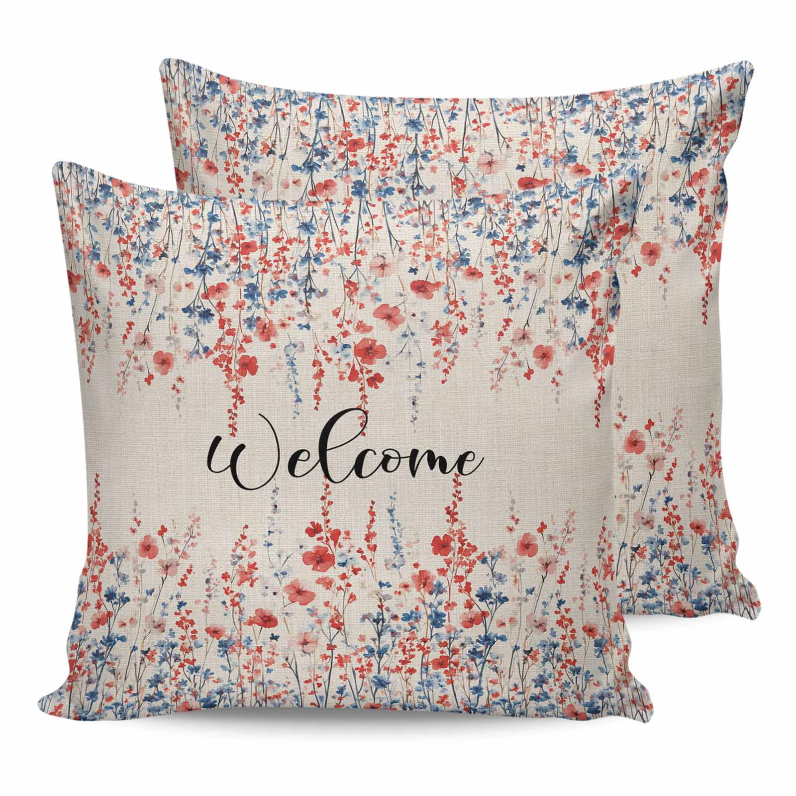 18x18 Pillow Covers Set of 2, Red Blue Spring Floral Throw Pillow ...