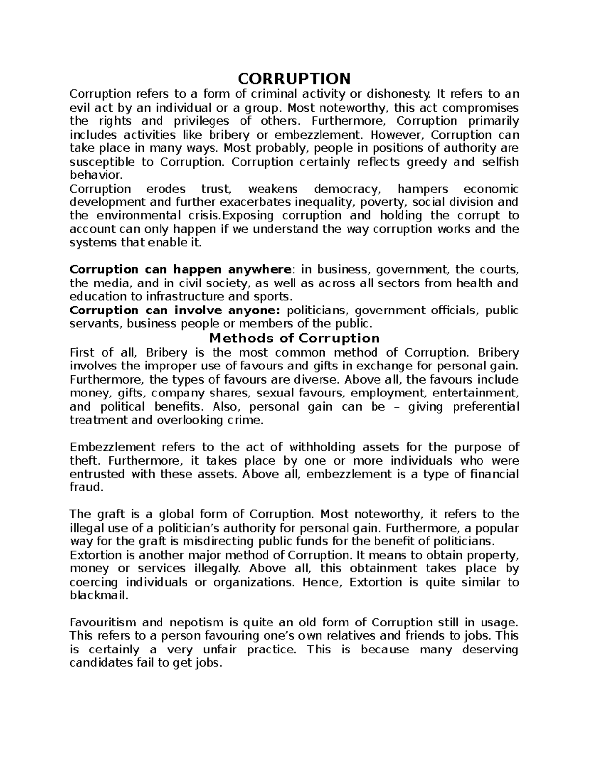 Understanding Corruption: Types, Methods, and Impacts - Studocu