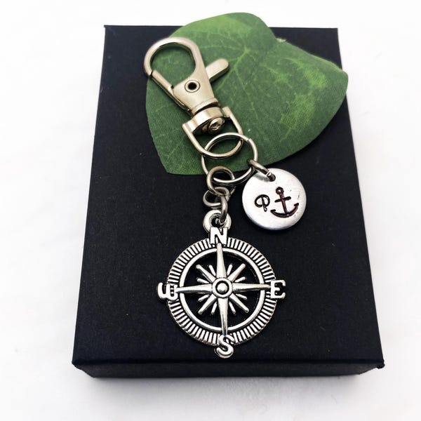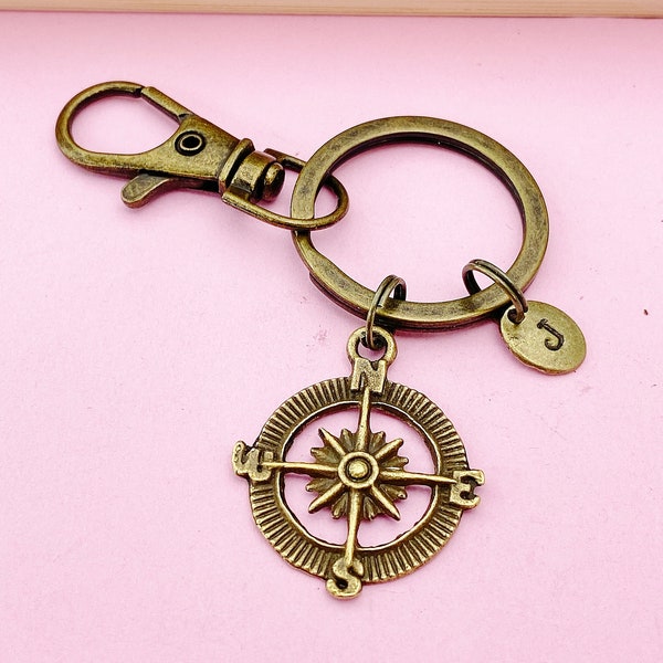 COMPASS KEYCHAIN Personalized With Initial Charm - Compass Keyring ...