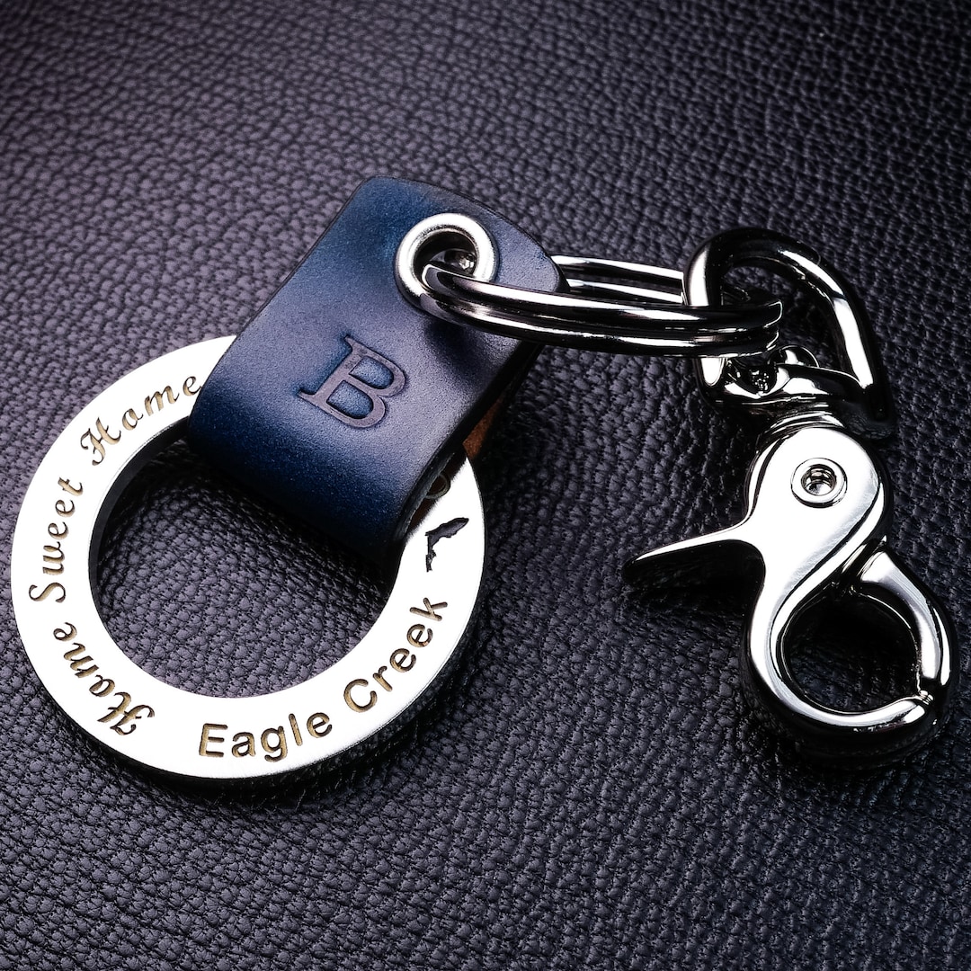 Custom Engraved Leather Keychain With Spring Loaded Closure - Etsy