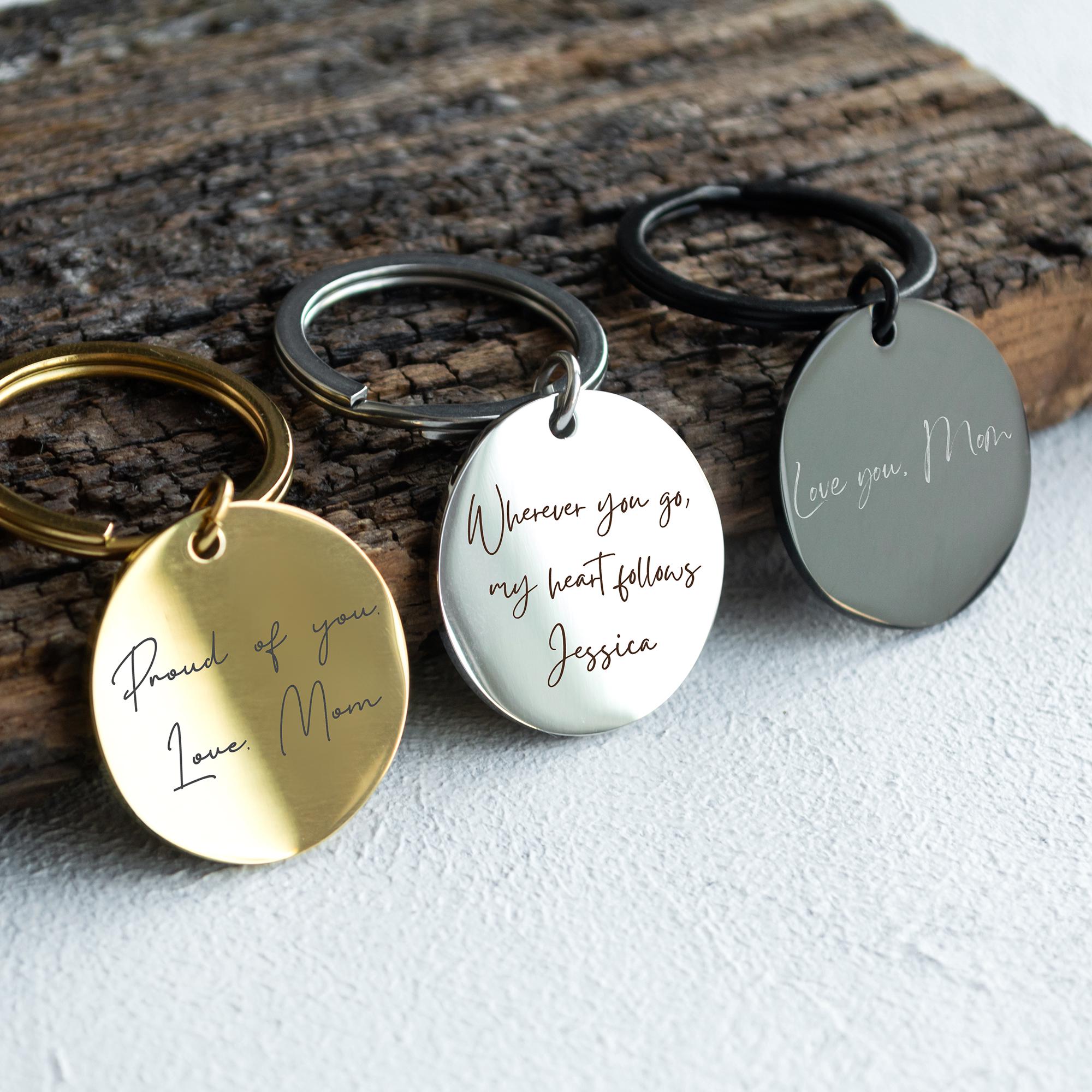 Custom Handwriting Engraved Keychain: Personalized Stainless Steel ...