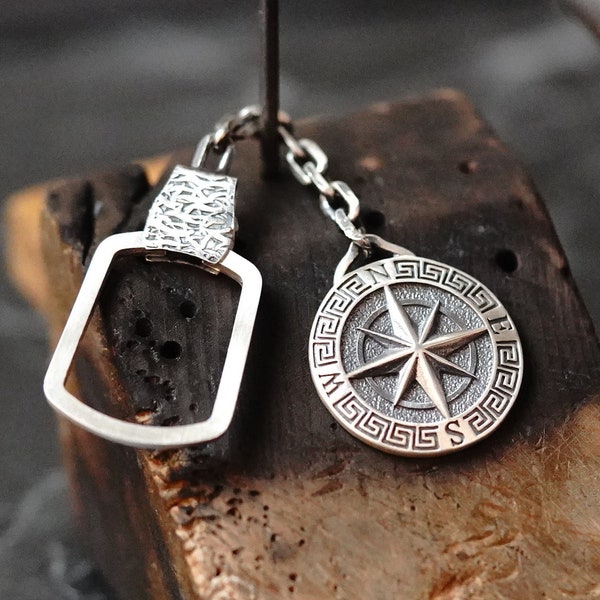 Engraved Compass Keychain - Etsy