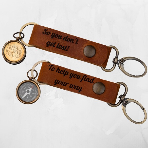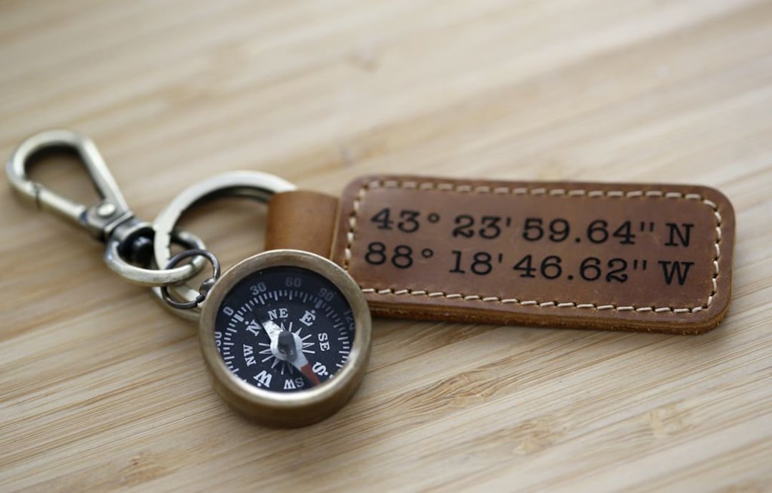 Keychain, Engraved Keychain, Personalized Leather Compass Keychain ...