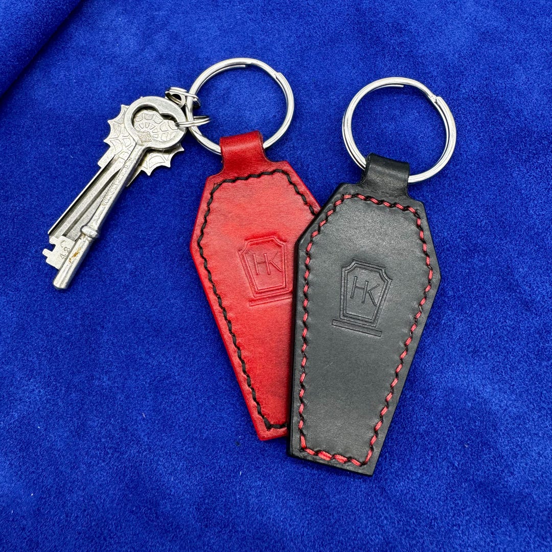 Leather Coffin Keychain With Custom Monogram Initial Gothic - Etsy