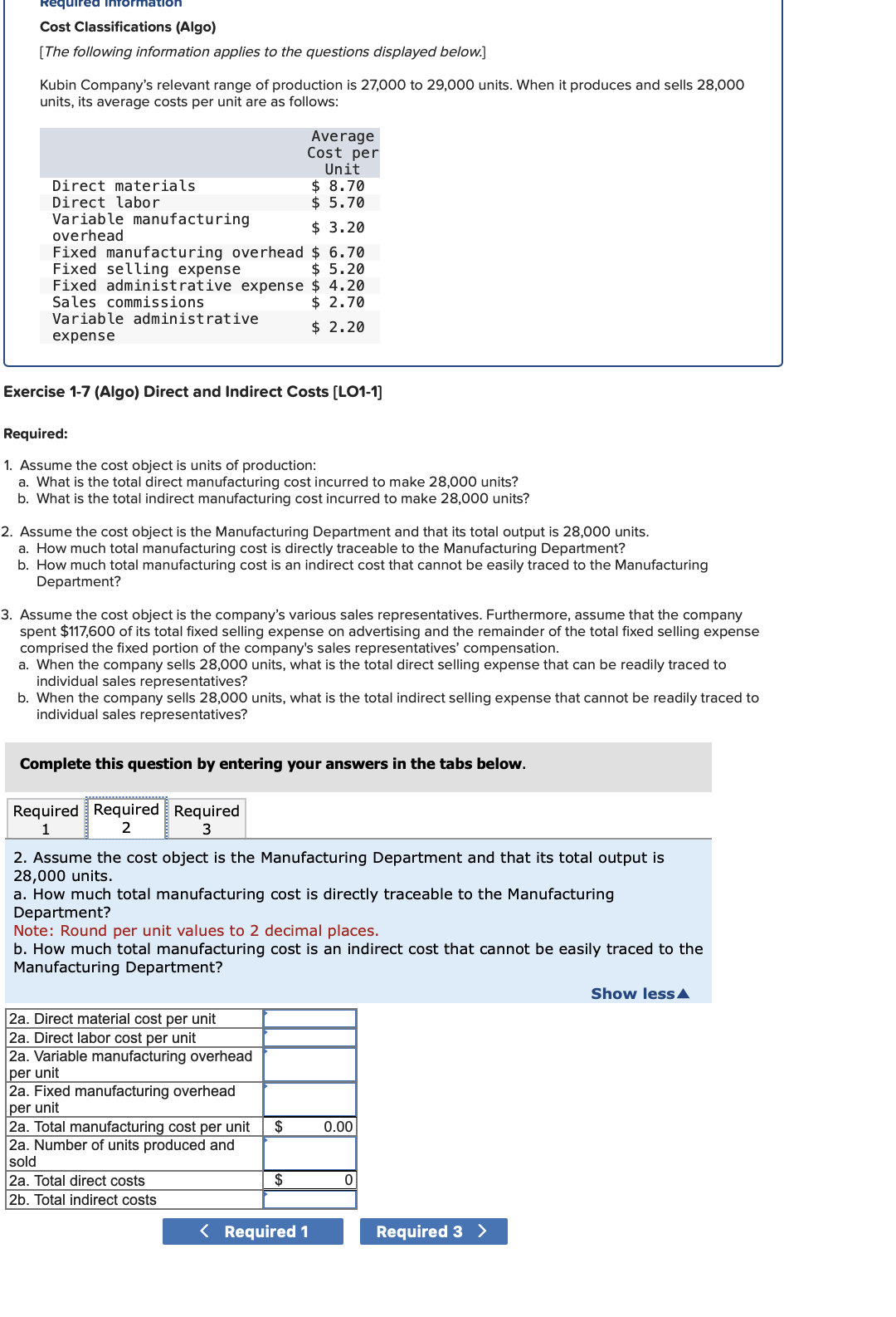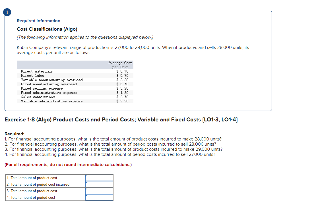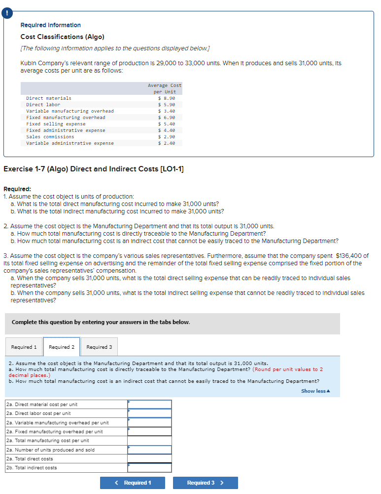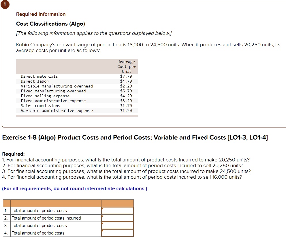 Solved Required InformationCost Classifications (Algo)[The | Chegg.com
