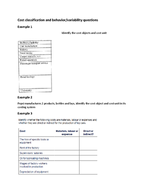 Tutorial 1 - Cost Classification and Analysis Questions - Studocu
