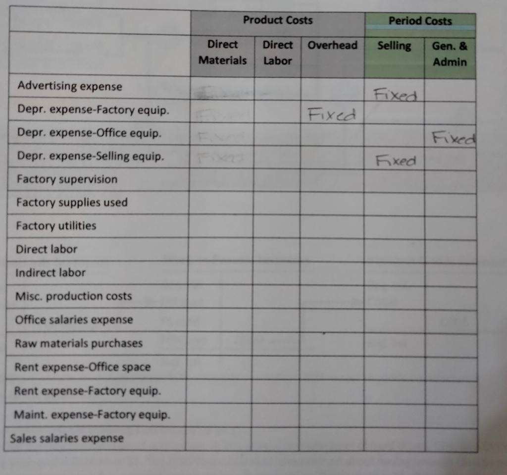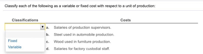 Solved Cost Classification Variable and Fixed Costs | Chegg.com