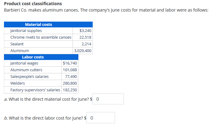 Solved Product cost classifications Barbieri Co. makes | Chegg.com