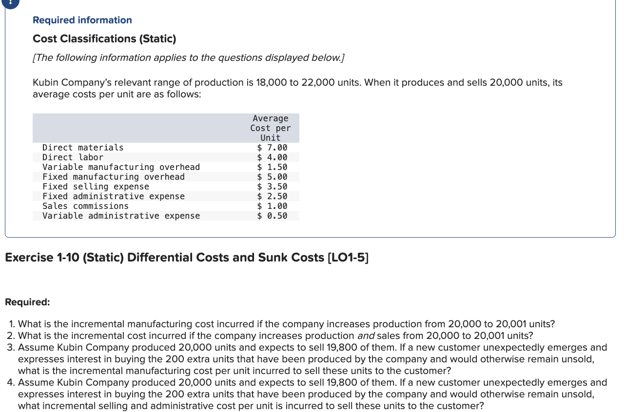 Solved Exercise 13-12 (Static) Cost classifications LO 13-3, | Chegg.com