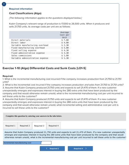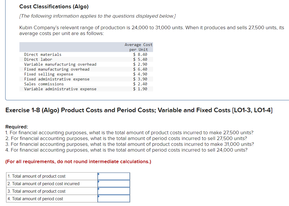 Solved Problem 1-24 (Algo) Different Cost Classifications | Chegg.com