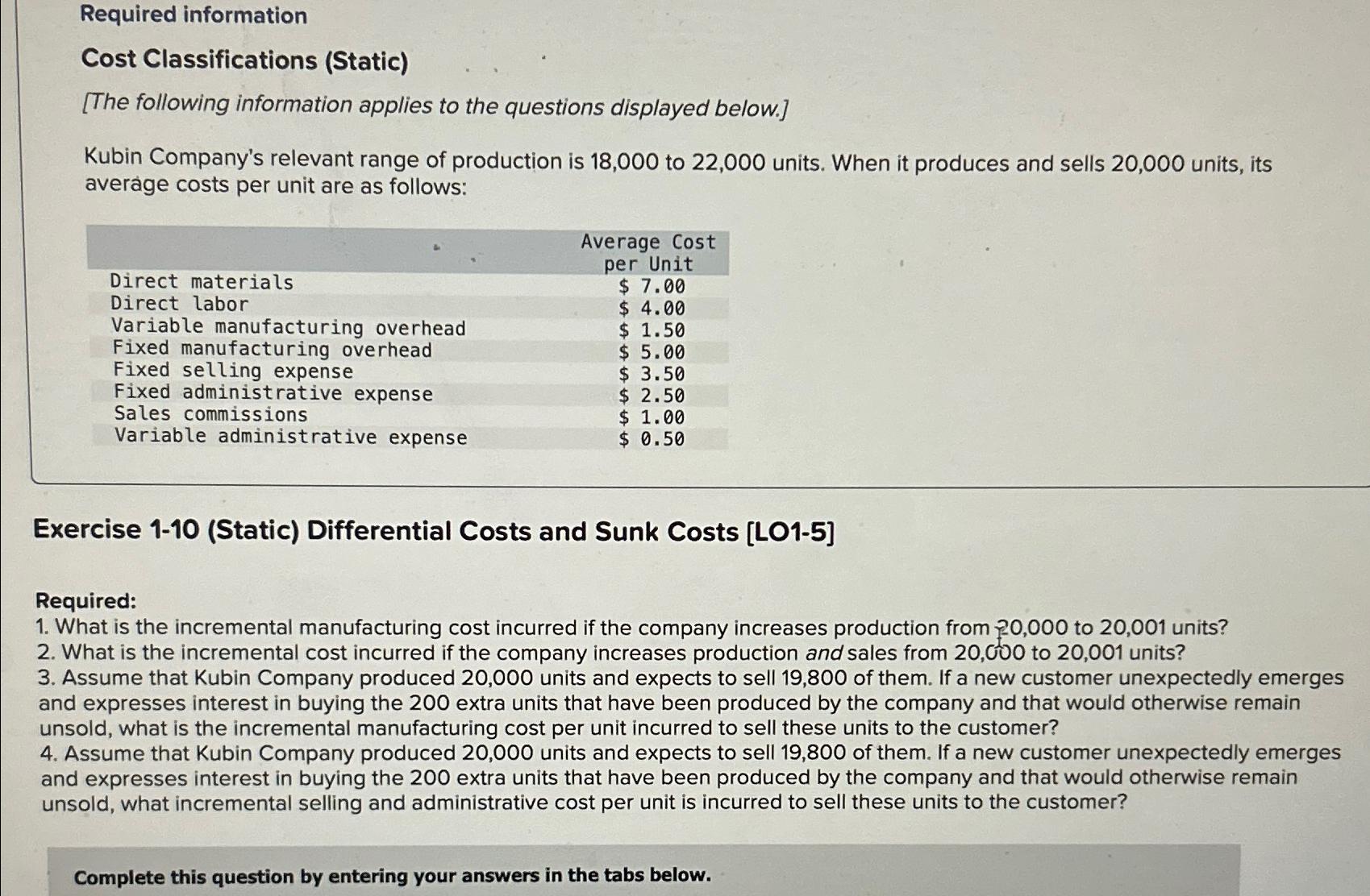 Solved Required informationCost Classifications (Static)[The | Chegg.com