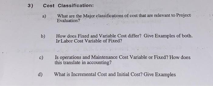 Solved 3) Cost Classification: a) What are the Major | Chegg.com