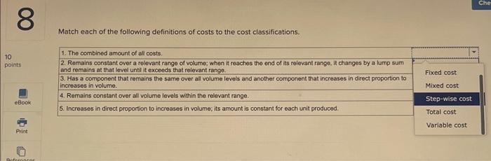 Solved Match each of the following definitions of costs to | Chegg.com