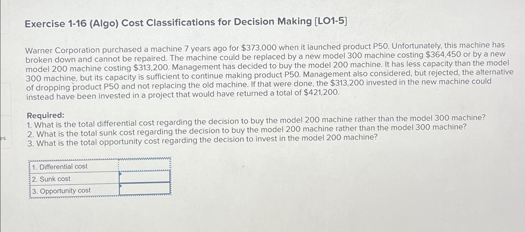 Solved Exercise 1-16 (Algo) Cost Classifications for | Chegg.com