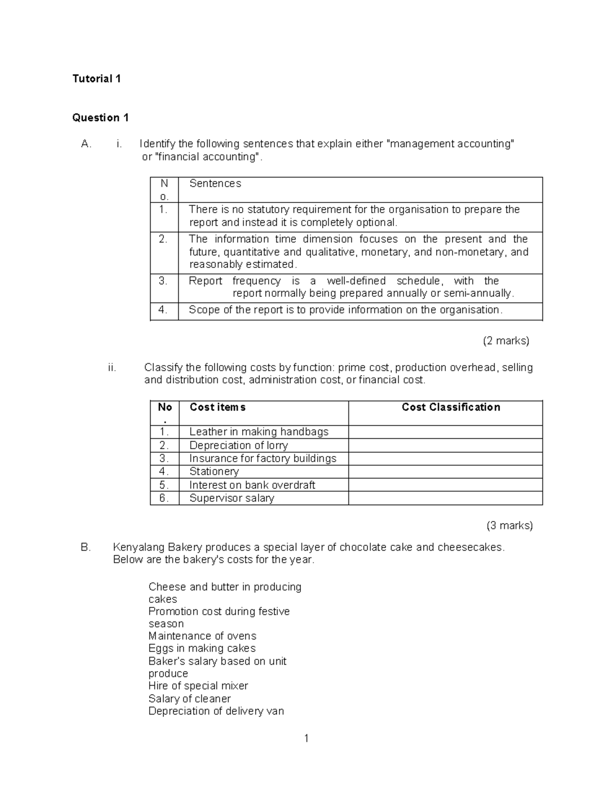 Tutorial 1 Cost Classification Question & Answer - MAF 451 COSTS AND ...