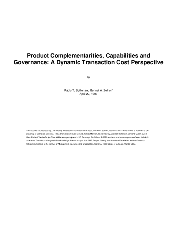 (PDF) Product Complementarities, Capabilities and Governance: A Dynamic ...
